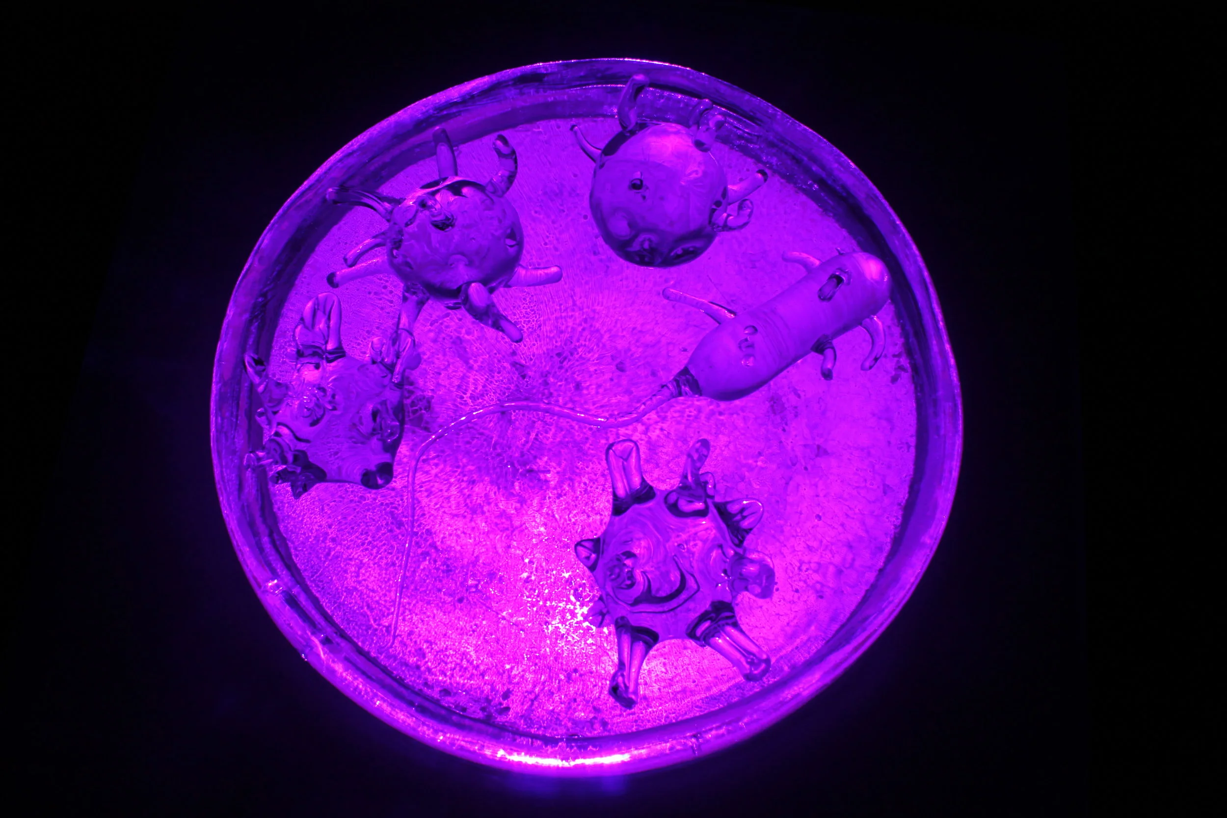 Plaster, aluminum, fat, watercolor, acrylic paint, flocking