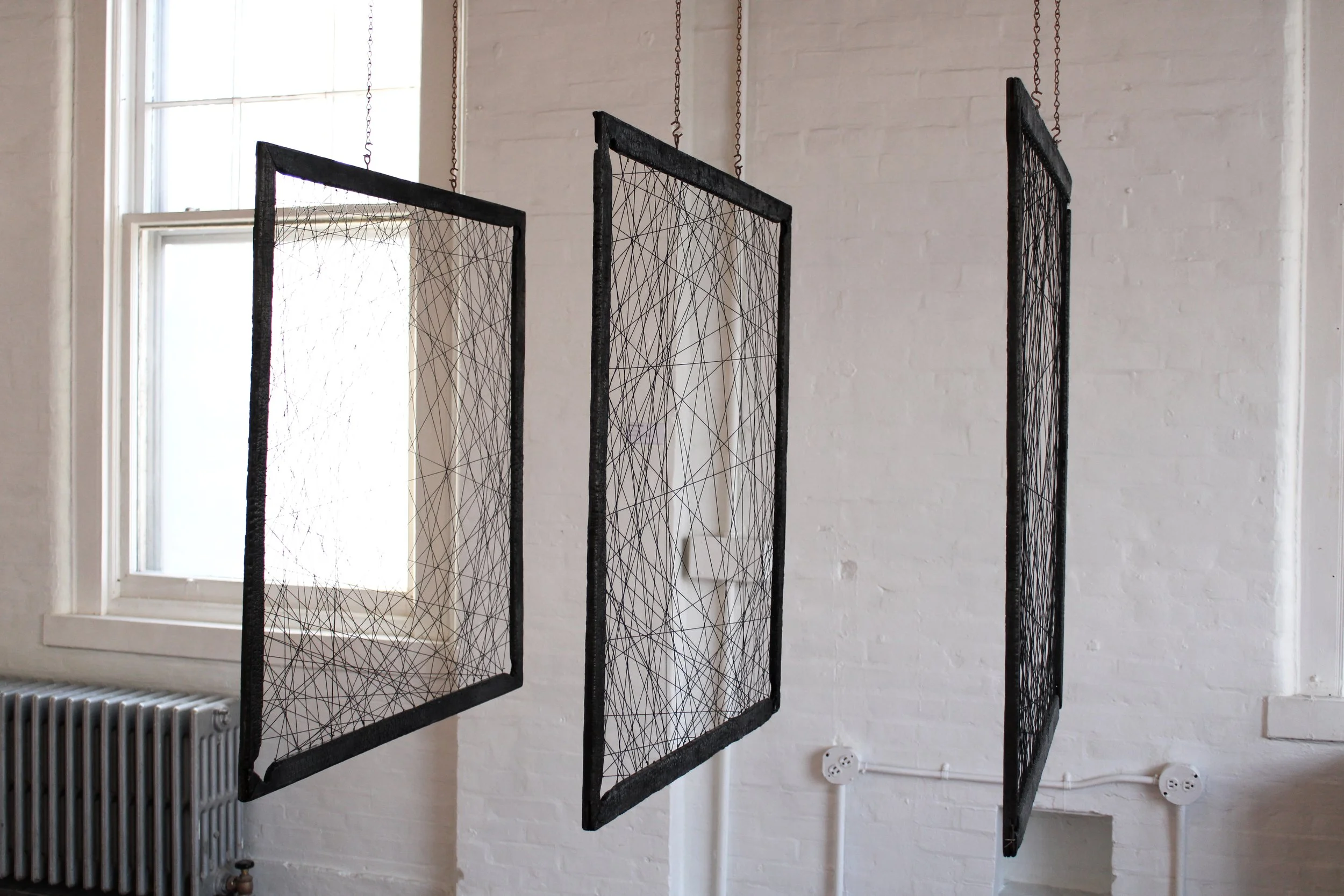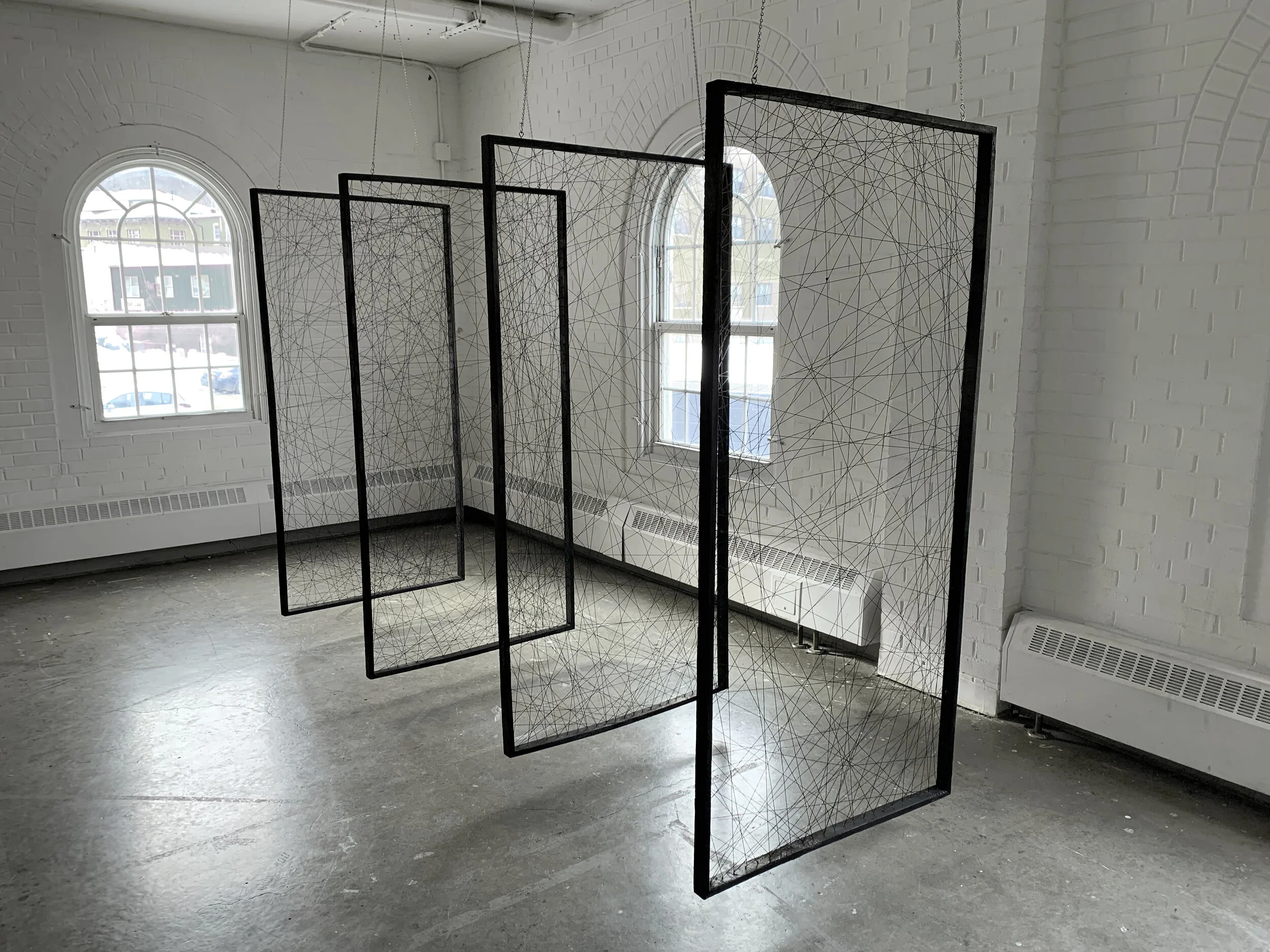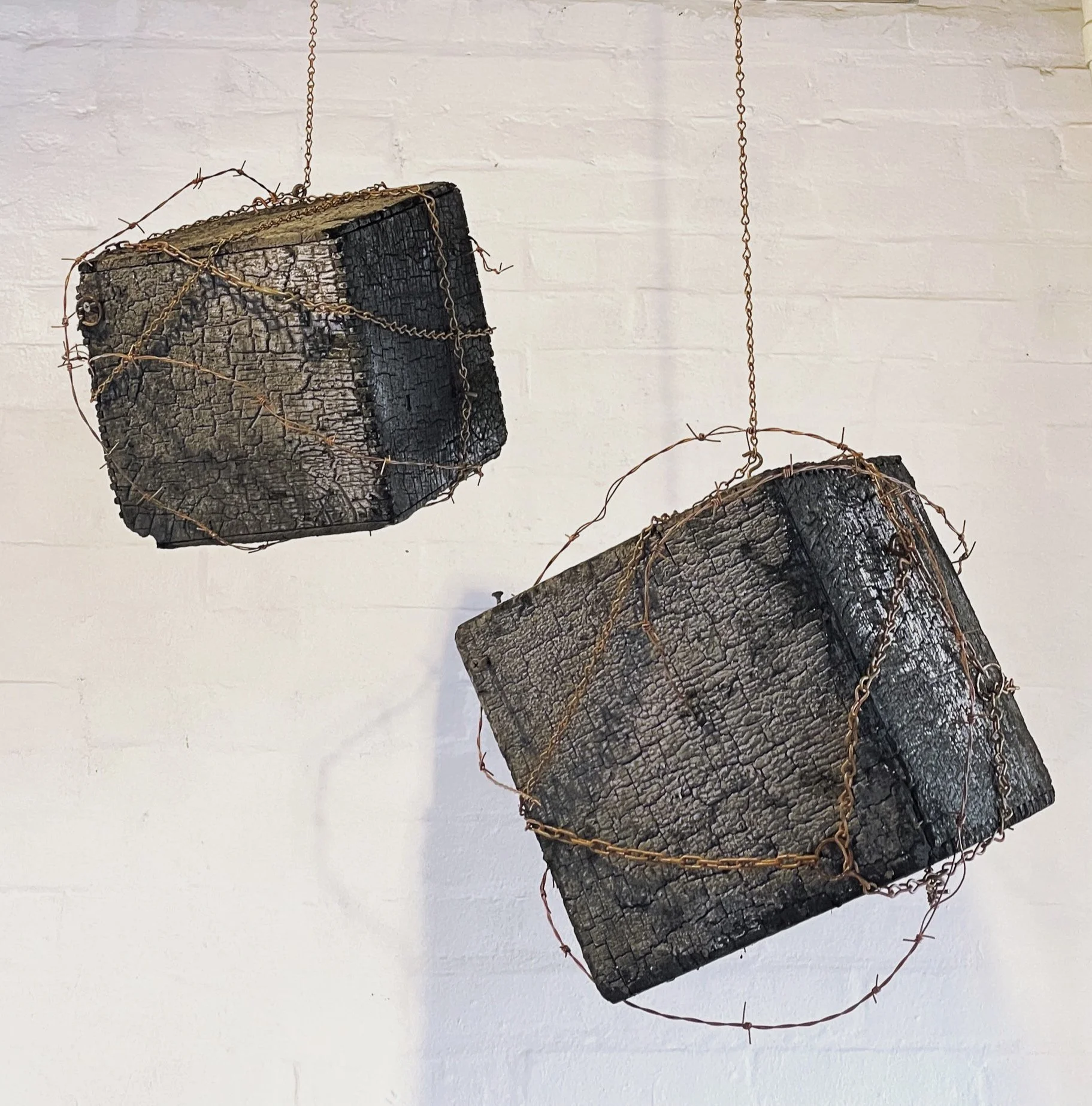 Glass, concrete, steel, paint, polyester, reclaimed furniture