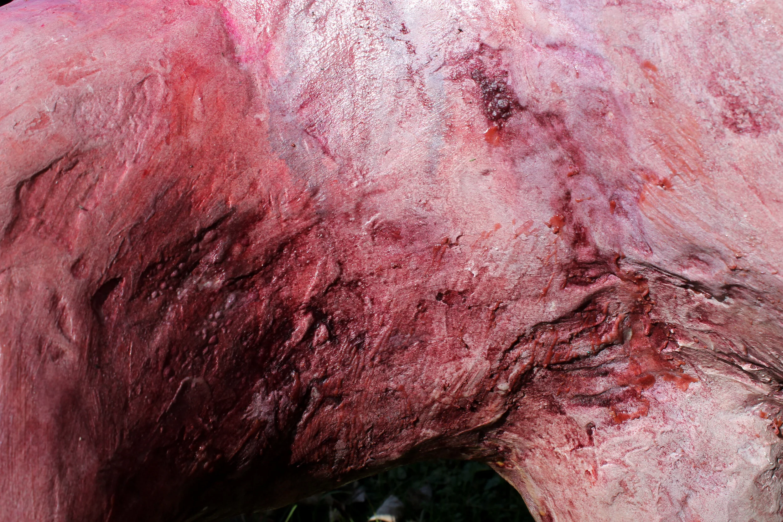 Steel, polyester, artist’s hair, latex, acrylic paint, humidifiers, water