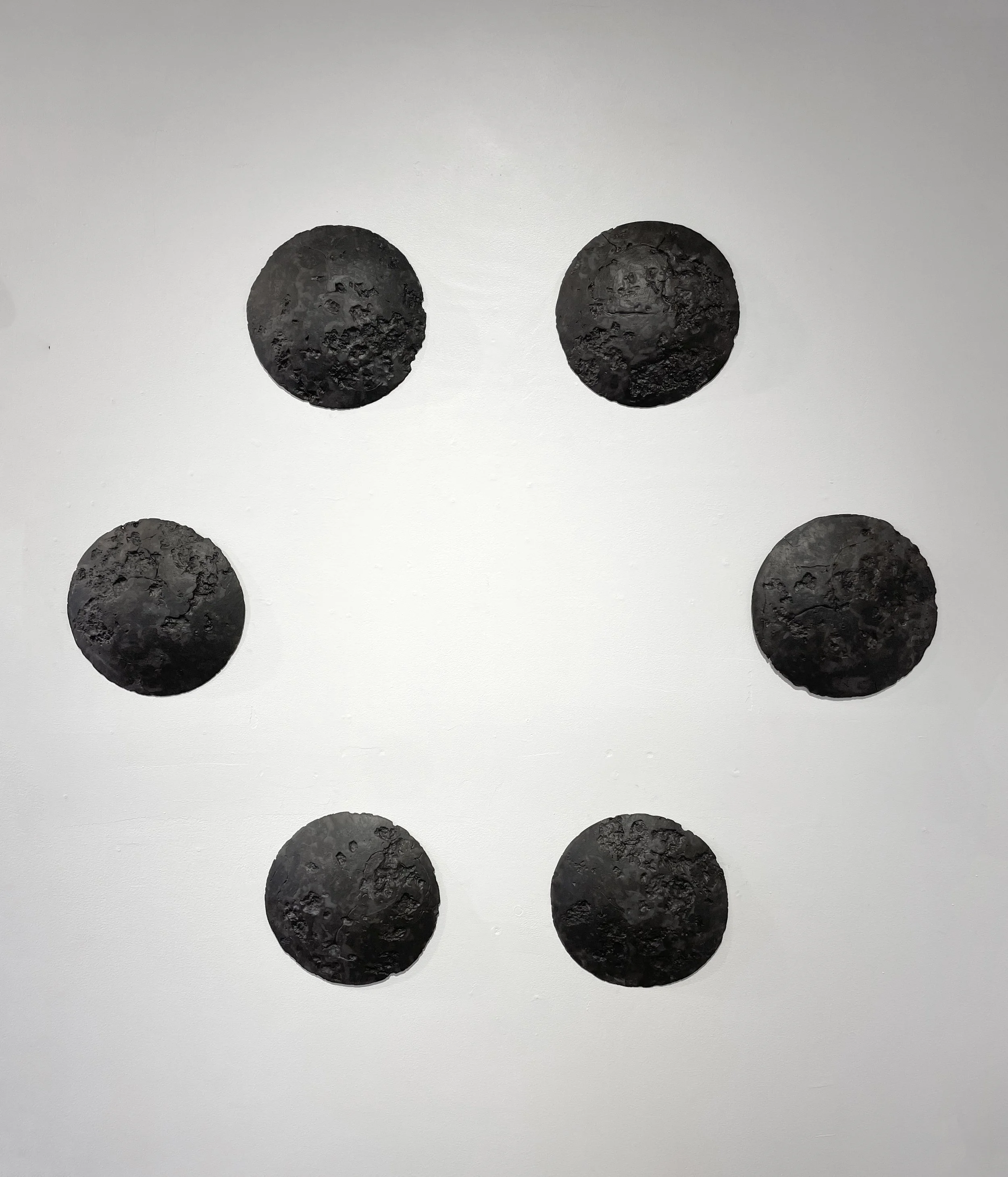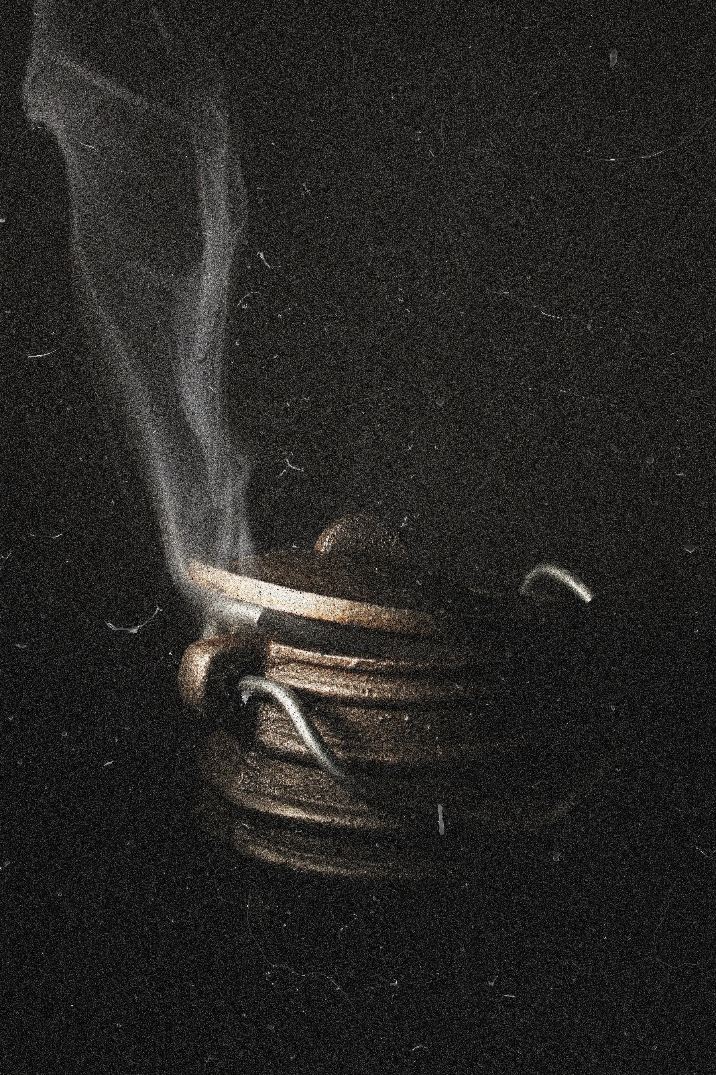 Clay, ash, rice paste, sacred text, quartz powder, silver, ink